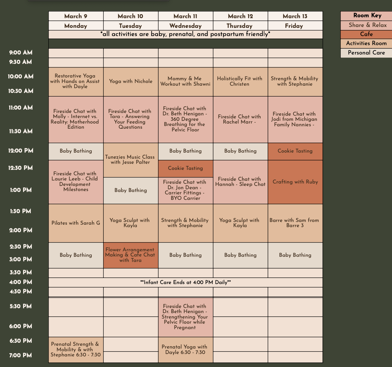 *All activities are included with memberships. They are designed to be enjoyed with your baby. However, infant care is available if you'd like some time to relax or focus on yourself.